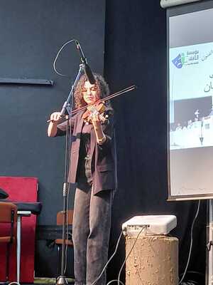 بعدها كانت استراحة فنية مع جوقة"المدرسة الشاملة أ على اسم الشيخ صالح خنيفس"، بقيادة الأستاذ رياض شهاب، التي قدمت أنشودتين من نظم الشاعر ماجد عليان وتلحين رياض شهاب، وهما نشيدي"المدرسة الشاملة أ"و"مدرسة العين الابتدائية"، وقامت طالبة الصف العاشر مديحة أبو حمود بعزف لحن"النهر الخالد"على آلة الكمان.