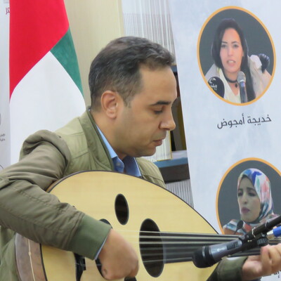 قرأت الشاعرة أسماء إدعلي أوبيهي، الفائزة بجائزة الشارقة للإبداع العربي (الإصدار الأول/2020)، نصوصها الشعرية الجديدة، ومن "عرس النار" تكتب شجنها ووجع القلق الذي يسكن صوت الشاعرة: "أنا قلب يياومه السؤال/ فكم صمتا ضفرت بما يقال// دمي كفن تجرحه المرايا/ فهزت قامتي وهمى الخيال// أجيء أرتل الدمعات يتما/ لعل الأرض تعصمني محال// تؤرخني البداية بعض نار/ أكول لا تقاربها السلال// تضم العود كي تحكي صداها/ وضلع العود يغشاه اشتعال".