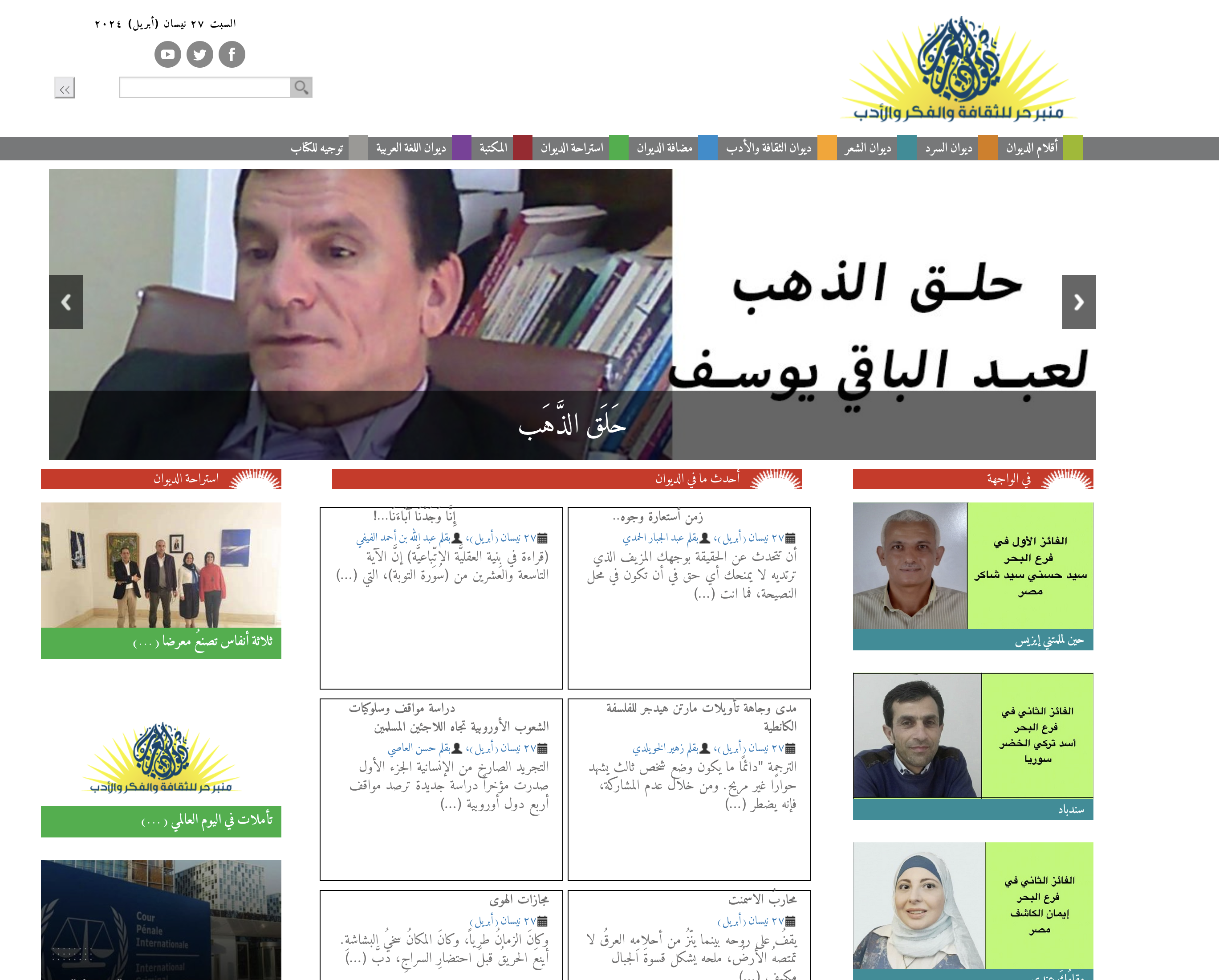 ديوان العرب تشكر الكاتب عبد الباقي يوسف على تفهمه، وصبره، وسعة صدره.