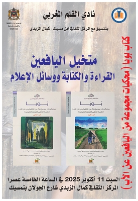 يفتتح نادي القلم المغربي بالدار البيضاء برنامجه الثقافي، بلقاء في موضوع "متخيل اليافعين: القراءة والكتابة ووسائل الإعلام"، بتنسيق مع المركز الثقافي ابن مسيك- كما الزبدي، وذلك يوم السبت 11 أكتوبر2025، وبدعم من وزارة الثقافة للانشطة والتظاهرات الثقافية، في الساعة الخامسة عصرا بالمركب الثقافي كمال الزبدي، شارع الجولان، بنمسيك بالدار البيضاء.