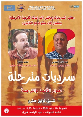 يستضيف مختبر الدراسات المغربية الأمريكية ومختبر السرديات بكلية الآداب بنمسيك يوم الجمعة الجمعة 10 ماي 2024 في الساعة 11٫30 صباحا بقاعة الندوات، الكاتبين عبد القادر الجموسي ومحمد عضيمة، وتنسيق توفيق جعفري، في لقاء حول " سرديات مترحلة: حوار الأدب والترجمة"، من خلال الحديث عن تجربتيهما في هذا المجال.