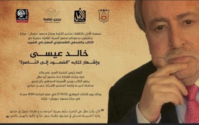 ***مداخلتي في حفل إشهار كتاب "الصعود إلى الناصرة" الذي نظّمته جمعية الأمل بالثقافة، منتدى الكلمة ومركز محمود درويش-عرابة يوم الثلاثاء 27.09.2022 في عرّاية الجليليّة