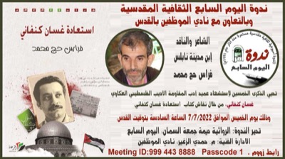 ***مداخلتي في ندوة اليوم السابع المقدسية، بوم الخميس 07.07.2022 (ندوة بمناسبة الذكرى الخمسين لاستشهاد عميد أدب المقاومة غسان كنفاني)