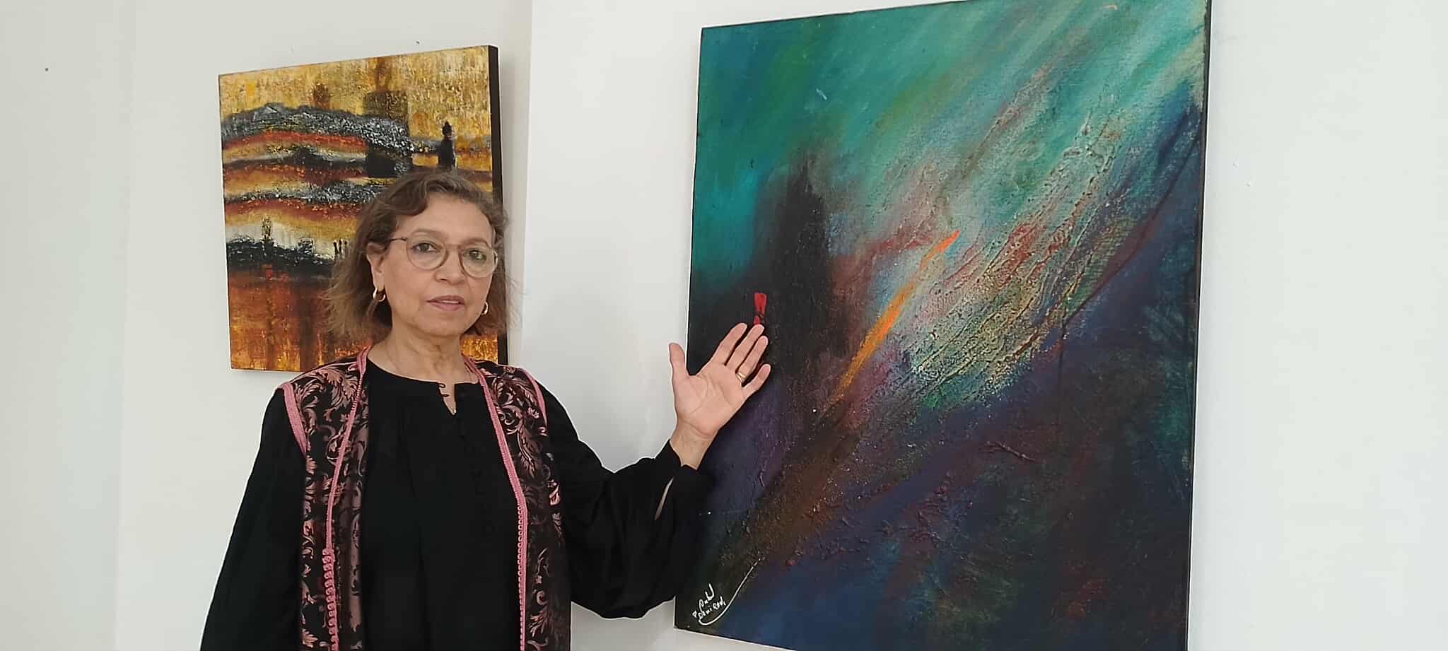 لوحات الفنانة التشكيلية في هذا المعرض، بوح شاعري جذاب، وحكمة فلسفية شريفة، تطرح سؤال الجمال والإبداع الخالص، من خلال انعكاسات لونية وديعة، على صفحات راقصة أكثر إشراقا.