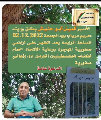 ***مداخلتي في حفل إطلاق رواية "مريم مريام" للأسير كميل أبو حنيش (دار الآداب اللبنانية) يوم الجمعة 02.12.2022 على أراضي صفورية المهجرة برعاية الاتحاد العام للكتاب الفلسطينيين الكرمل 48 وأهالي صفورية