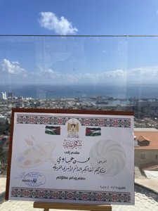 وباسم زوجتي سميرة التي تعذّر حضورها وباسمي وباسم صديقي مصطفى نفاع الذي رافقني من حيفا،