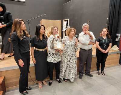 في الختام قدّم الأَمين العامّ للاتّحاد المحامي سعيد نفّاع، ومديرة لجنة أدب المرأة الشّاعرة تفّاحة سابا، وأَعضاء طاقم إِعداد الندوات، الكاتبتان د. حنان جبيلي عابد و د. روز اليوسف شعبان والكاتبة حوّا بطواش، درعًا تكريما للكاتبة أغصان حسن على روايتها المميّزة "أنثى ما فوق الخطيئة".