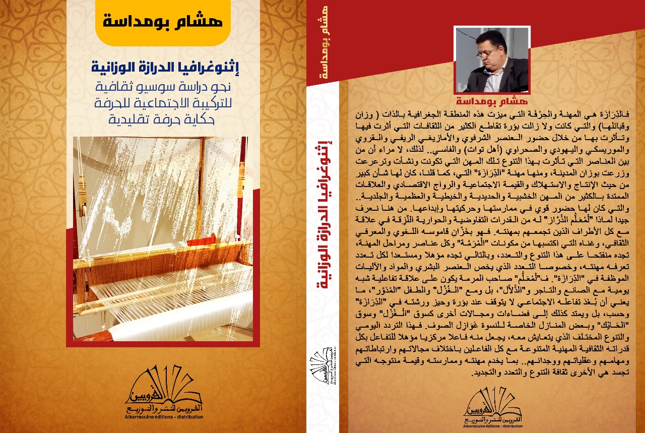 اختار هشام بومداسة لمؤلَّفه الجديد موضوعًا مثيرًا للاهتمام وجديرًا بالتأمل، وهو: "إثنوغرافيا الدِّرازة الوَزَّانية؛ نحو دراسة سوسيوثقافية للتركيبة الاجتماعية للحرفة – حكاية حرفة تقليدية". ويقع الكتاب في 326 صفحة، وصدر عن دار القرويين للنشر والتوزيع بالقنيطرة سنة 2025.