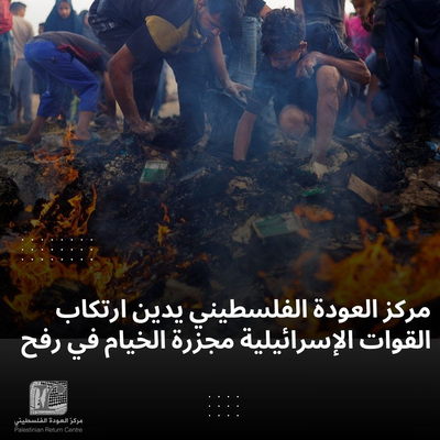 مركز العودة الفلسطيني يدين المجازر الإسرائيلية والاستهداف المتعمد للضحايا وأسرهم، ويعتبر أن هذا الحدث المأساوي هو استمرار لسياسة ممنهجة تهدف إلى توسيع نطاق القتل والدمار في غزة، وجعلها غير صالحة للسكن البشري.